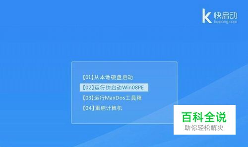 将准备好的快启动u盘启动盘插在电脑usb接口上,然后重启电脑,在出现开机画面时通过u盘启动快捷键进入到快启动的主菜单界面后,用键盘上的上下键将光标移至“【02】运行快启动Win08PE”并回车确定,如下图所示: