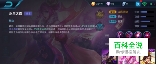 永生之血: 被动技能,芈月每损失1%的最大生命获得1%的吸血效果,所造成的伤害都会附带一个轻微的减速效果。