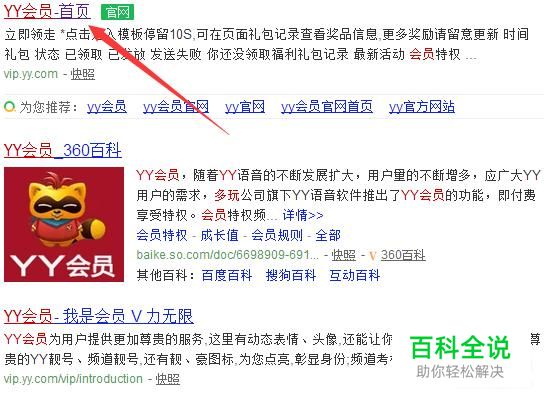 我们打开浏览器搜索YY会员,并打开YY会员的官方网站。