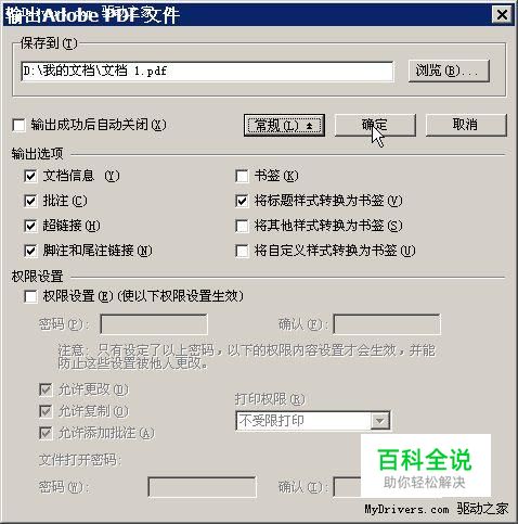 将WPS文档输出为通用PDF格式 PDF是一种通用的文档标准,它可以跨平台浏览编辑,非常方便。WPS 2010支持将文档导出为PDF文件,先保存好文档,再选择“文件”→“输出为PDF格式”,然后作相应设置(如图1,可加密)即可将其导出为标准的PDF文件。