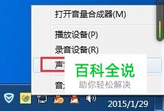 右键点击电脑桌面右下角的小喇叭按钮,然后点击声音。
