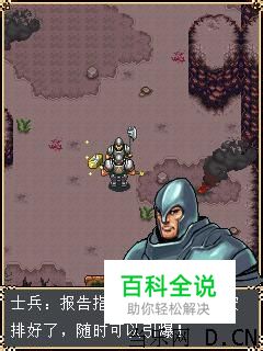 【游戏简介】 人类面临种族灭绝的危急关头,圣骑士克鲁泽手持“圣光之锤”与魔族背水一战。6种神圣的战锤功能各异,华丽爽快的必杀技、丰富的合成升级系统,与克鲁泽一起拯救人类世界吧! 【游戏操作】 移动:数字键2、4、6、8 菜单:左软键或右软键 切换武器:数字键1 必杀技:数字键3 【游戏攻略】 魔族入侵塔纳城,骑士首领克鲁泽奉命带领圣光骑士抵御敌人的进攻。由于敌人过于强大,危机时刻,克鲁泽想到炸毁敌人必经的一个峡谷来阻断敌人前进的道路,好争取时间给国王和国民撤退的时间。 克鲁泽吩咐一路士兵去峡谷处布置好炸药,另一路腿快士兵的去塔纳城通知国王及时撤退。 之后克鲁泽来到峡谷中,魔族首领刚好在此,上去开打,克鲁泽发现自己不是对手,决定使用圣光之锤的禁技同魔族首领同归于尽,技能使用后,引爆了埋在峡谷的炸弹,克鲁泽也被滚落的巨石击中,失去意识倒在地上。 稍后克鲁泽被路过的少女莎拉救回到塔纳城南部的罗斯村中并养好了伤。 和村长对话,克鲁泽的说自己在和魔族交战中不但没有杀死魔族首领反而自己的武器“圣光之锤”不慎丢失,所以克鲁泽决定先返回塔纳城找回圣光之锤,村长同时把村里世代供奉的神器“大地之锤”送给克鲁泽暂时先用着。 旁边的莎拉把克鲁泽叫到了一旁,提醒克鲁泽说,以你现在战斗力是根本打不过魔族的,然后莎拉说自己有方法能恢复克鲁泽的战斗力,条件就是让克鲁泽找回自己在路上丢失的“甘玉之露”,莎拉告诉克鲁泽甘玉之露被一个奸商拾了去,奸商就在村子的南部,克鲁泽找到奸商,赎回了甘玉之露,把甘玉之露还给莎拉,莎拉用魔法恢复了克鲁泽的战斗力,并让他顺便带一封信给塔纳城的蒙特。 克鲁泽带着信准备返回塔纳城,在路上一处发现前面给岩石挡住了。 询问旁边的村民有没其他路,村民说这是唯一通往塔纳城的路,说岩石可以用一种特殊的炸药炸开,并说罗斯村的铁匠可以制造出这样的炸药。 克鲁泽返回罗斯村,在村子找到铁匠,铁匠说自己会制造那种炸药,但是现在没有原料,让克鲁泽去罗斯村北部的黑暗森林找回4个制造炸药的材料“炎爆颗粒”,到黑暗森林后可以找到4个箱子,箱子里面可以得到炎爆颗粒,返回到村子把材料给铁匠做好炸药。 之后铁匠说村长在找克鲁泽,找到村长,村长说莎拉不见了,让克鲁泽如果发现莎拉就顺便带回来。 克鲁泽再次返回被挡住的地方准备炸开岩石,发现岩石已经消失不见。
