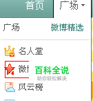 首先在导航上找到“广场”,点击“微博达人”。