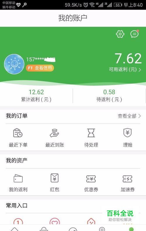 现在就来到了”我的“菜单,也就是个人中心,如果还没有登录帐号的话先来登录账号,下面直接点击”可用返利7.62元“