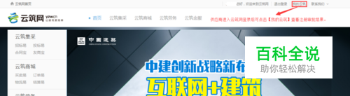 首先进入云筑网官网,点击页面左上方蓝色【免费注册】开始进入注册流程。