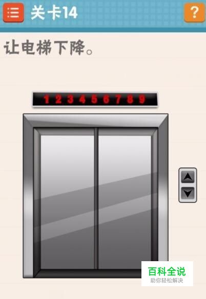 14关卡,让电梯下降。点击电梯,然后往下拉即可过关。