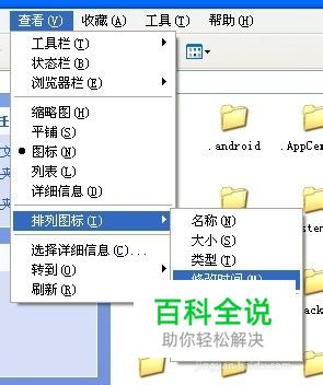 点击上方的查看——排列图标——名称,这样文件按开头字母排列容易查找