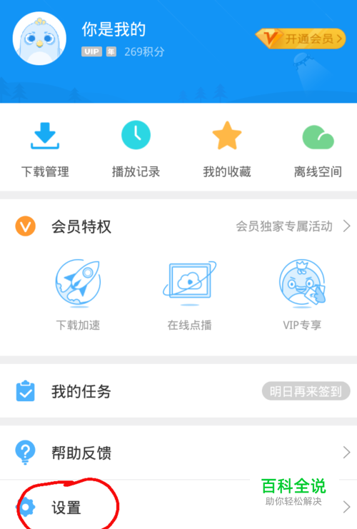 打开手机迅雷点击屏幕下方的“我的”页面再点击“设置”