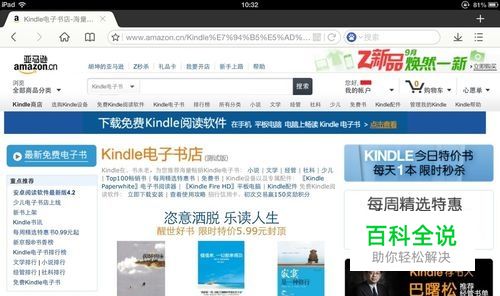 进入亚马逊的主页,找到kindle电子书。 www.amazon.cn