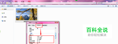 在属性框中。选择“ 详细信息”,向下拉,可以查看到该图片的尺寸信了。