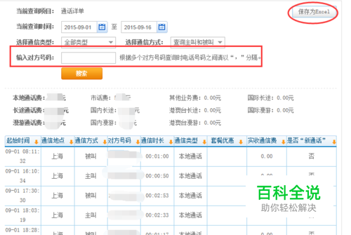 然后就能看到最近的通话记录,拨打和接听的都能看到,通话时间长短之类的也可以看到。 右上角有【保存为excel】,点击能够保存到桌面,下载后打印。