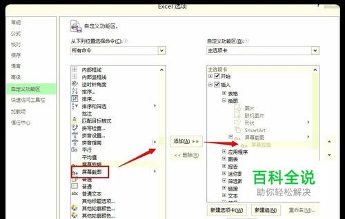 如果你的EXCEL插入界面中没有截图可以打开【选项】进行添加。 下面是添加的界面,自己好好看看,这里不多解释了!