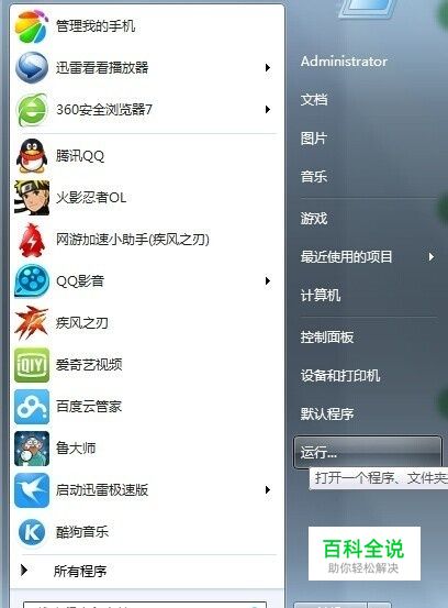 打开“开始”菜单,点击“运行”按钮