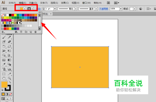 也可以使用白色箭头”直接选择工具“,选中一定的图形空间,再单击色板上的任意一种颜色,这样也可以给图形填充上特定的颜色