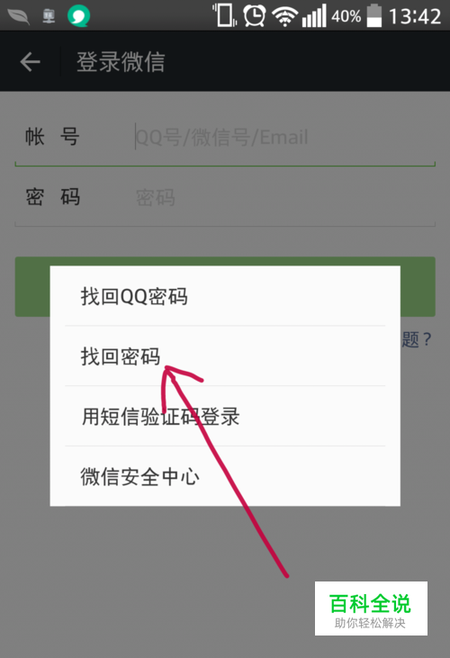 选择:“找回密码”。