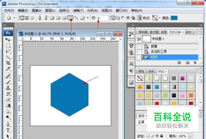 首先在photoshop中新建一个文件,选择【路径】工具,选择【多边形工具】,再设置边数为【6】,画出如下图形: