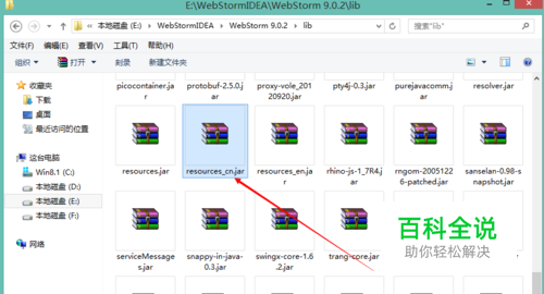 准备webstorm的汉化包,汉化包可以从网上下载,注意版本的匹配,否则可能引起软件不能正常启动。 找到你的webstorm的安装路径目录名称lib下,如下图所示: