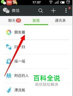 正常用手机打开微信,然后点击发现,进入朋友圈 可能版本不同的话会有些差异,总之先进入朋友圈