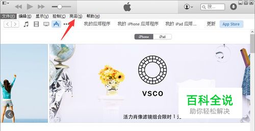 方法一、删除iphone6plus app store中的已购项目 1、首先在电脑上面安装苹果iTunes管理软件,依次打开iTunes软件的“商店”进入,如下图。