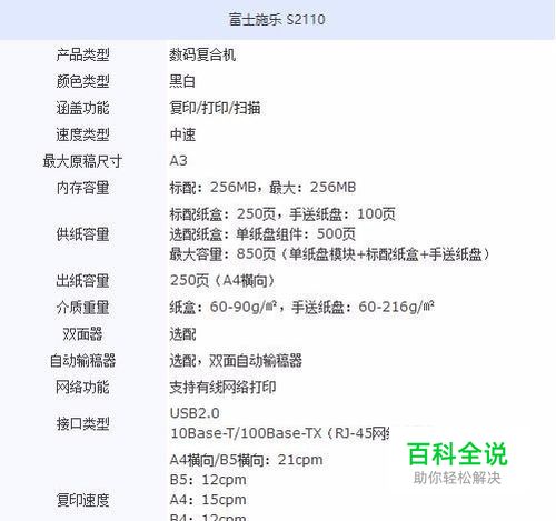 富士施乐2110是一款性价比非常高的数码多功能复印机,富士施乐S2011N的首页输出所需时间为7.4秒,快速启动,紧急操作时也无需等待,最大支持A3的幅面,涵盖有复印/打印/扫描功能,采用黑白方式工作,其内置256MB容量的内存,支持双面打印,设置有USB接口。