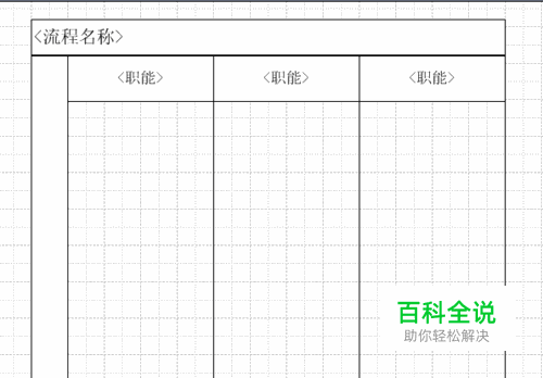 1、首先绘制一个流程边框,用于明细各个职能部门的操作步骤!下面所有的流程图都在这个边框中绘制!属性哪个部门操作就绘制到哪个部门。