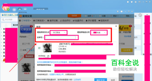 点击进入如图所示,会提示如下内容: 1、发货方式 2、物流公司 3、运单号 4、发货地址 5、退货地址 详细填写准确无误后,点击“确定发货”来完成本次发货。