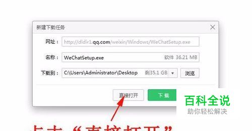 在弹出的下载窗口中,选择“下载”或者“直接打开”均可,我们选择“直接打开”