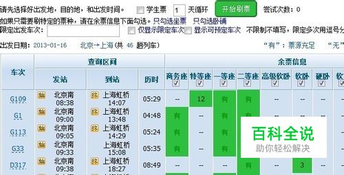 登录网站后,选择出发地和目的地。然后选择出发日期和出发时间段,勾选出发车次的类型复选框按钮,然后点击绿色“开始刷票”按钮开始刷票。