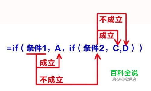 在基础公式上,可以学一学IF()函数的嵌套。格式如下: if(条件1, A, if(条件2, C, D)) 即把原来的B,也写成一个if()函数。 【解读】如果“条件1”成立,就执行A语句,如果“条件1”不成立,就再看“条件2”,如果“条件2”成立,就执行C语句,“条件2”也不成立,就执行D语句。