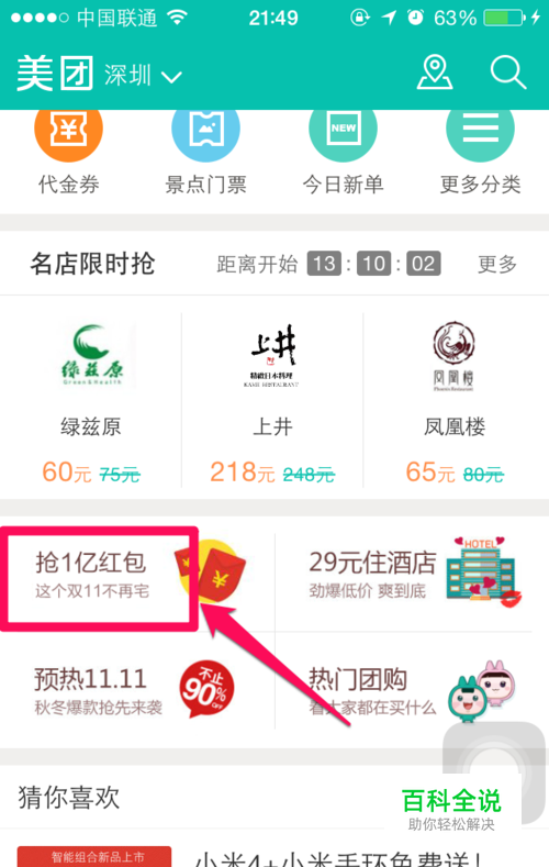 在手机登录美团客户端,点击抢一亿红包这个活动页面。