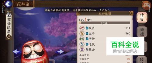 奉为达摩: 也就是我们所说的白达摩,白达摩是比较好用的,有的一般存起来,先把白达摩的等级升满,因为只要普通式神一半的经验,所以升级很快,升满之后我们留着后面给其他式神升星用。
