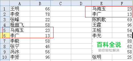 我们发现很多时候两个表格内会有重复的内容,如下图所示。