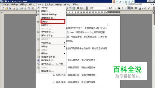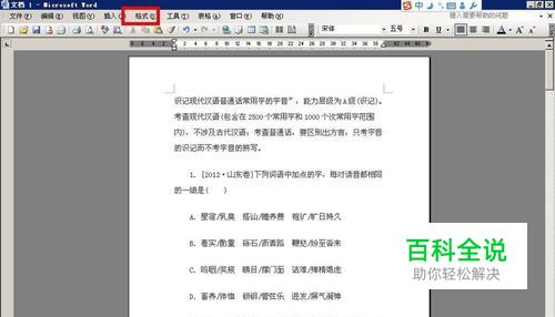 首先,打开我们准备好的word文档,这里面自然都是最重要的知识点了,然后我们点击如图所示位置格式选项;