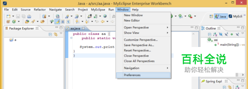 一,打开myeclipse10.0,依次点击菜单栏中Window-->preferences,弹出preferences设置对话框。
