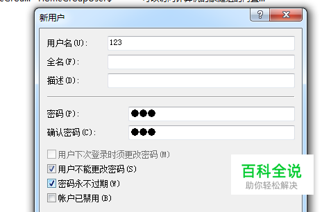 进入新用户界面后,输入用户名和密码,然后在下面的四个选项中根据中间需求选择,点击创建就成功创建了新的用户