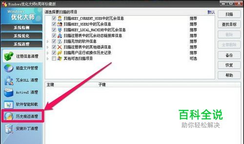 3,进入要扫描的项目窗口,选择要清理的历史记录项目,选好后,按“扫描”。