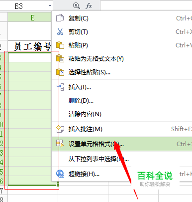 打开设置单元格格式。在日常费用表中选择E3:E16单元格区域,右键--设置单元格格式。如下图所示。