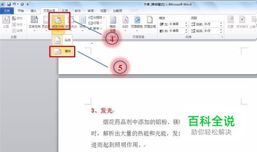 依次选择:纸张方向、横向。