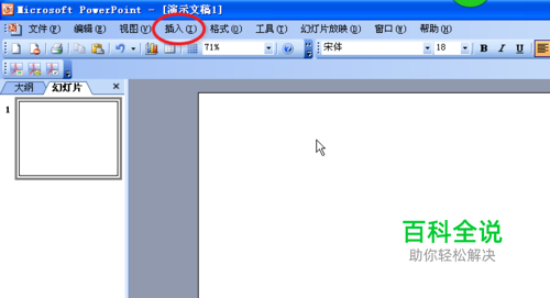 打开Power Point软件→点【插入】→下拉菜单点【表格】选项。