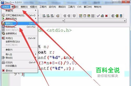 具体编程前保存文件,单击 文件菜单,下拉菜单中选择 保存按钮。