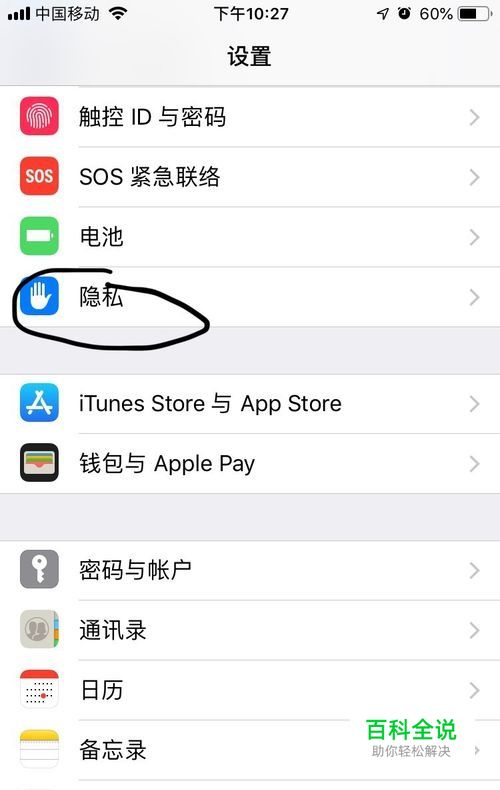 打开手机的设置功能,在设置界面找到隐私选项,点击进去。