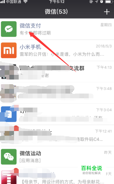 接下来在聊天页面找到微信支付的公众号,如下图所示在桌面即可看到,如果你没有添加,找到可以直接输入微信支付进行添加即可