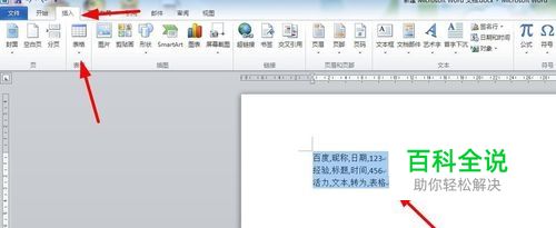 之后我们选中要编辑的文本,文本中的逗号要是英文状态哦,在插入栏里找到表格。
