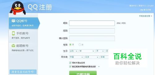 打开浏览器,在地址栏复制以下链接:http://zc.qq.com/chs/index.html?from=client&ptlang=2052®key=420317DBAF5473C24DD3D30C42BCC72023F5AC3C9951AF7E199C12FAB7DE95FF&ADUIN=0&ADSESSION=0&ADTAG=CLIENT.QQ.5239_NewAccount_Btn.0&ADPUBNO=26248,复制完后会出现下面的界面: