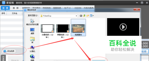 步骤二:点击左下角【添加视频】选择添加.截取.删除音频视频,点击打开