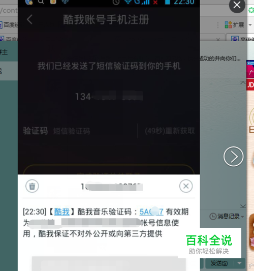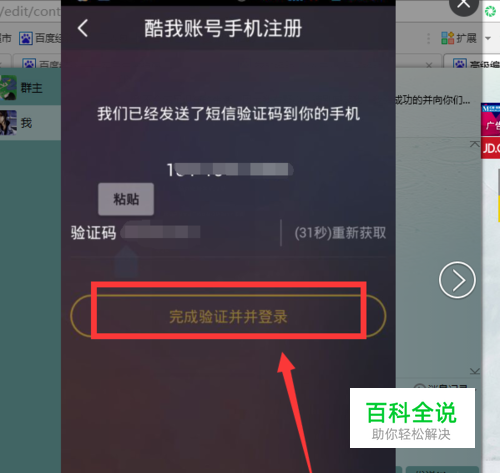 第五,在“手机短信验证”页面中,正确填写好验证码后,点击“完成验证并登录”,当显示到登录成功后,便已注册好酷我音乐帐号。如下图示: