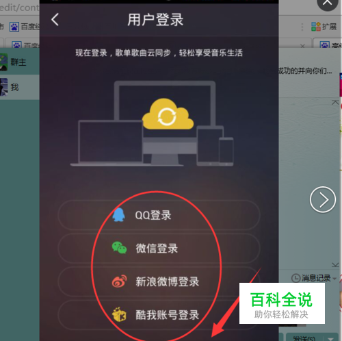 第三,在"用户登录"页面中,我们可以看到有多项的选择.我们可以根据自己的喜欢去选择QQ,新浪,微信等帐号登录,要是想拥有酷我帐号,点击"注册酷我帐号".如下图示: