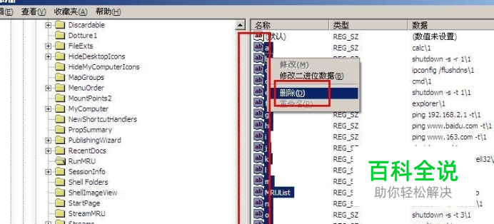 CurrentVersionExplorerRunMRU中删除,删除后重启电脑就没有了,如下图