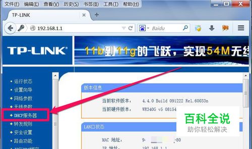 进入路由器之后,先在左侧选项中,找到并选择“DHCP服务器”这一项。