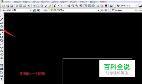 打开CAD软件,在左侧的工具栏里打到矩形工具,随意的画一个矩形。